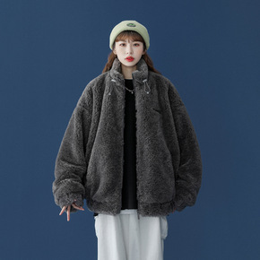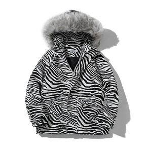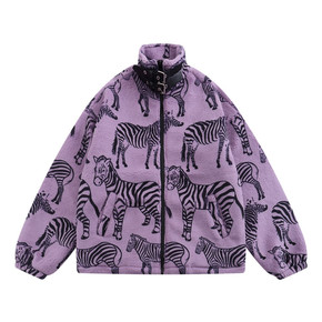斑马满印花羊羔毛外套男士bf原宿风宽松立领加厚棉服...