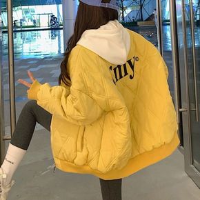 字母休闲慵懒风夹棉菱格棒球服外套女冬季新款设计感小...