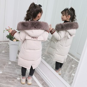 女童棉服中长款外套2021中大童棉衣棉袄加厚冬季毛...