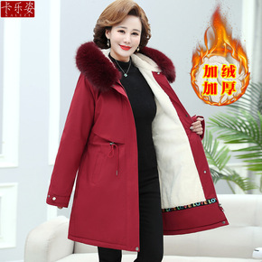 妈妈冬装外套加绒加厚羽绒棉服中老年人棉衣女洋气中长...
