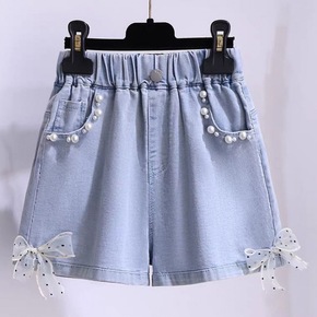 女童夏装牛仔短裤2022新款洋气中大童薄款蝴蝶结儿...