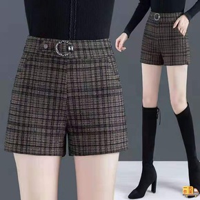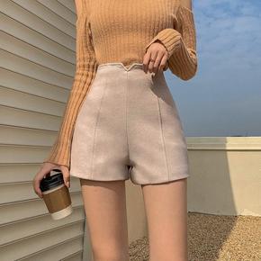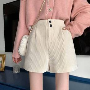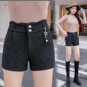 毛呢短裤女2022新新款高腰外穿大码胖阔腿裤显瘦休...