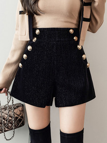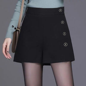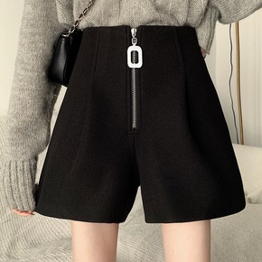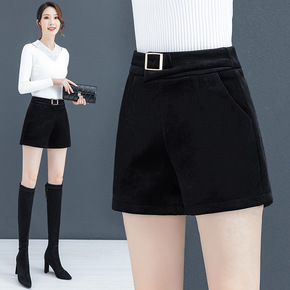 2021秋冬季新款高腰毛呢短裤黑色a字显瘦大码宽松...