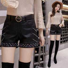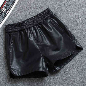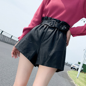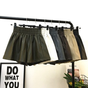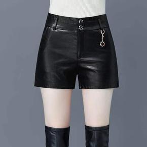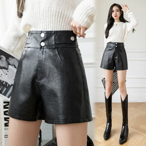 黑色外穿pu皮短裤2021年女士秋冬季新款高腰宽松...