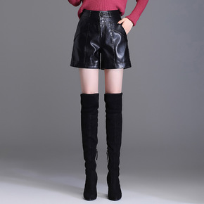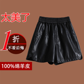 高腰皮短裤女2021秋冬大码a字阔腿软皮短裤女外穿...