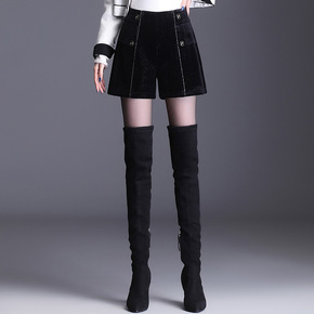 秋冬新款女装女短裤裤大码外穿洋气高腰显瘦潮...