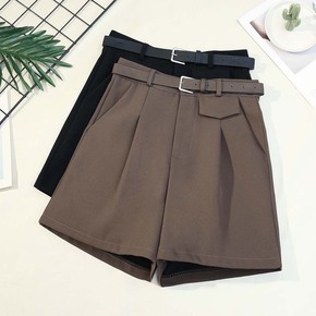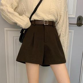 毛呢短裤女2021秋冬新款高腰显瘦百搭阔腿裤外穿大...