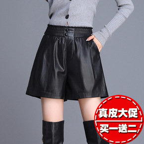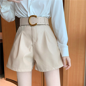 皮短裤女2021新款秋冬款时尚高腰阔腿宽松大码A字...