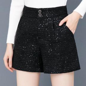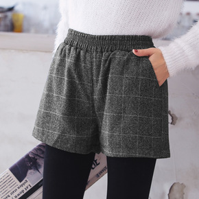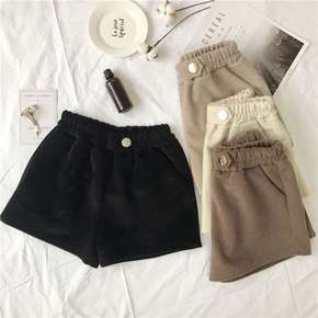 毛呢短裤女秋冬季新款宽松高腰阔腿字打底靴裤冬款外穿...