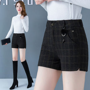 毛呢短裤女秋冬季外穿靴裤2021新款春秋高腰显瘦百...