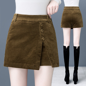 灯芯绒短裤女秋冬2021新款时尚休闲外穿高腰显瘦宽...