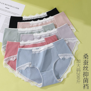 冬季小蛮腰高腰内裤女桑蚕丝抗菌女士短裤 法式蕾丝收...