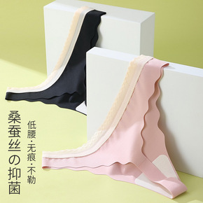 女士内裤一片式无痕隐形性感火辣丁字裤女桑蚕丝抗菌运...