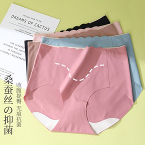 桑蚕丝内裤女 纯棉抗菌裆一片式无痕高弹棉感三角短裤...