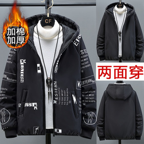 外套男春秋冬季2021新款两面穿韩版潮流加棉加厚夹...