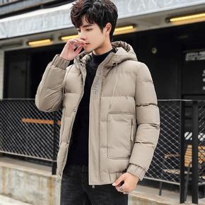 2021冬季男士连帽棉衣修身加厚大码棉服青年韩版外...