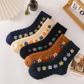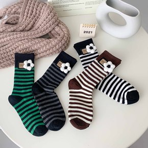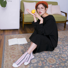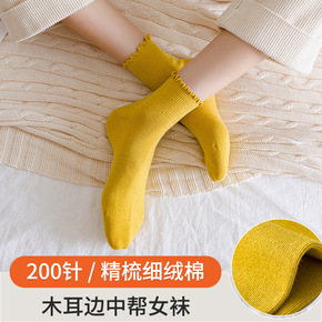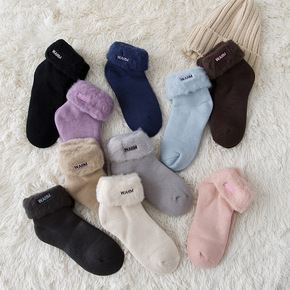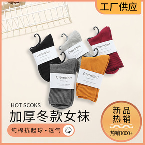 冬季保暖女袜时尚纯棉翻口纯色加厚中筒ins秋冬双针...