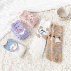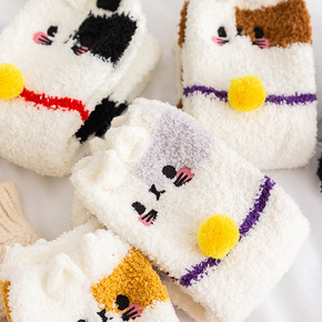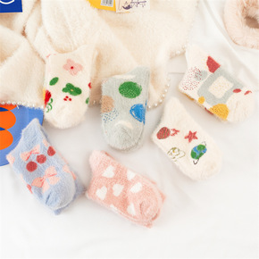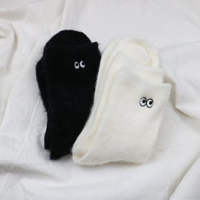可爱日系毛绒小眼睛袜子女 纯色毛绒加厚堆堆袜ins...