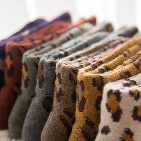 日系豹纹加厚加绒毛圈豹纹中筒袜韩国ins潮个性冬保...
