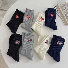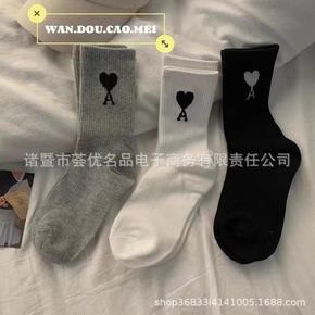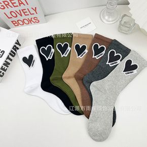东大门新款韩货ins潮牌爱心手工贴标烫印袜纯棉袜子...