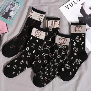 袜子女冬季中筒袜女纯棉ins潮长袜网红款外穿运动长...