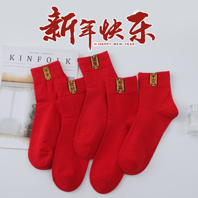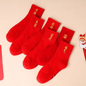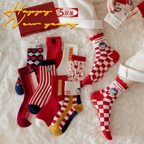 冬季新款虎年本命年袜子新年喜庆大红袜子鸿运中筒袜女...