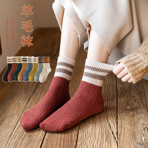 袜子女中筒棉袜加厚粗线堆堆袜圣诞袜日系韩版潮女士长...