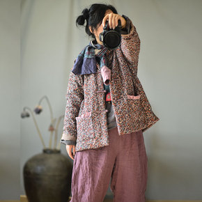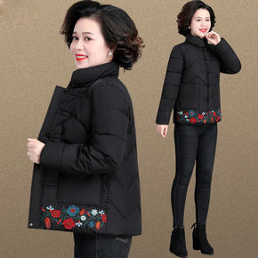 中老年民族风棉衣女短款2021年冬装新款羽绒棉袄中...