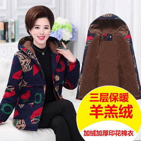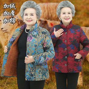 中老年女装棉衣加绒加厚棉袄奶奶装大码中长款妈妈装棉...