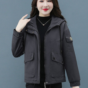 实拍2021新款小个子加绒加厚派克棉服女短款冬季工...