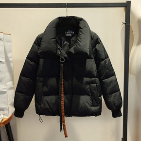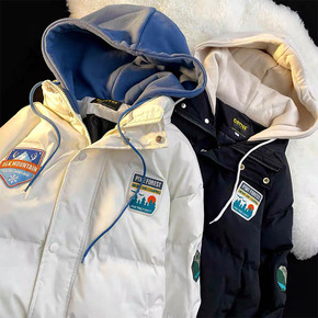 短款假两件套冬季羽绒棉服女学生情侣韩版宽松加厚面包...