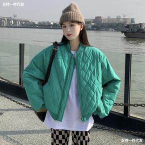 夹棉菱格棒球棉服冬季2021新款立领加厚小棉袄设计...
