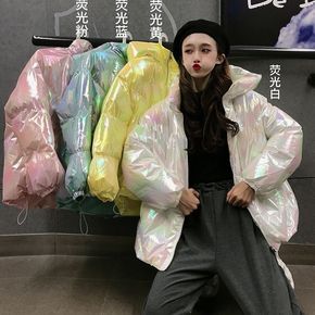 2021韩版冬季新款炫彩荧光亮面设计感加厚保暖棉服...