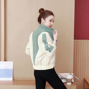 短外套女百搭灯芯绒拼接撞色2021秋季新款小个子夹...