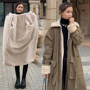 羊羔毛机车外套女韩版宽松ins潮加绒加厚保暖工装棉...