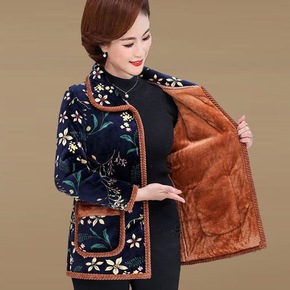 中老年女装棉衣短款翻领保暖加绒加厚奶奶冬装花棉袄老...