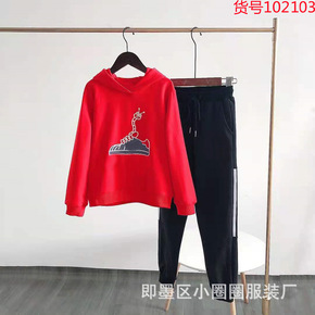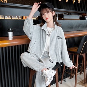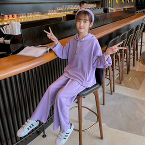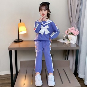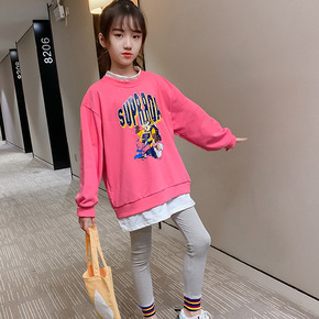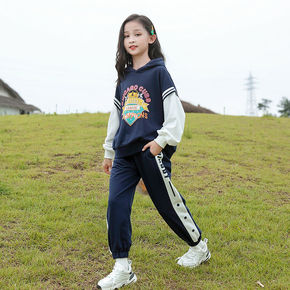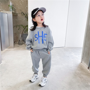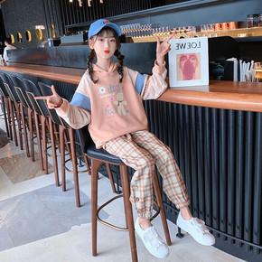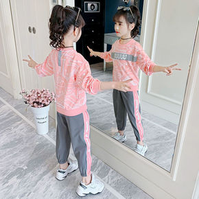 跨境女童春秋套装20新款韩版长袖中大童网红全棉卫衣...