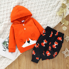 童装批发男女童春秋新款卡通可爱长袖套装宝宝连帽卫衣...