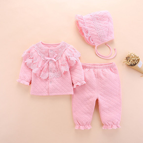 春季新款婴儿服 夹棉三件套 女宝宝公主套装 婴幼儿...
