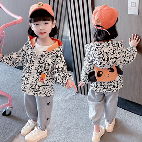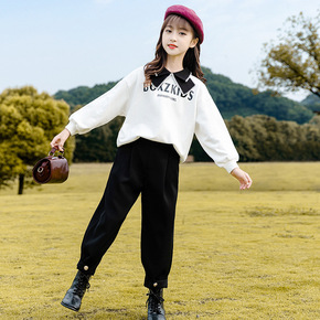 儿童运动长袖长裤卫衣两件套甜美女童秋装拼色休闲圆领...