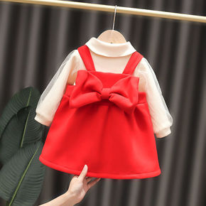 女宝宝套裙冬装儿童加绒高领公主裙套装新款洋气小女孩...