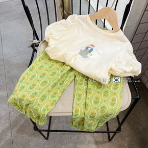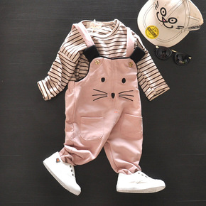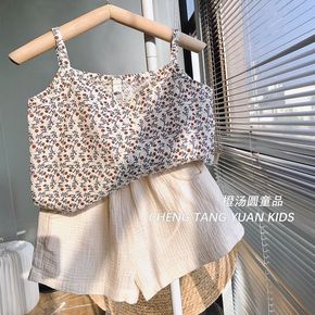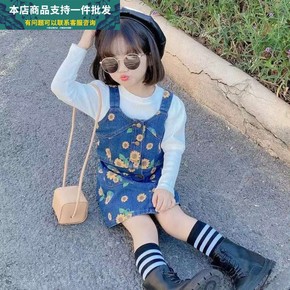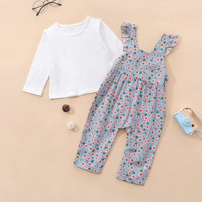 一件代发婴幼童白T背带两件套连体裤套装女童清爽碎花...