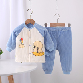 哆咪娃冬季婴儿卡通保暖套装男女宝宝夹棉加厚无骨两件...