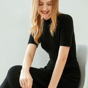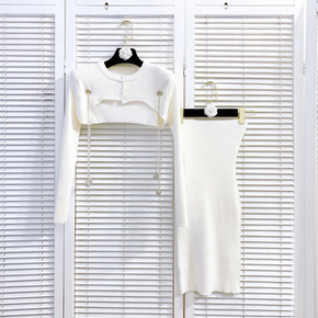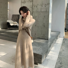 秋冬新款纯色山羊绒毛衣半袖两件套装连衣裙女中长款过...