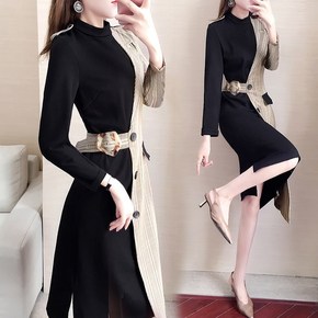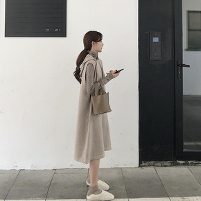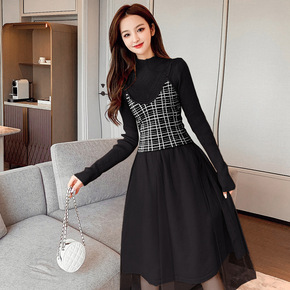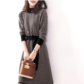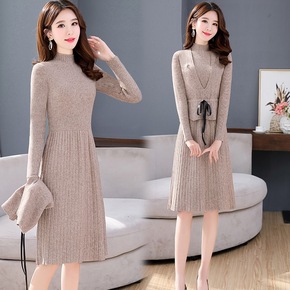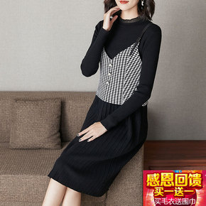 9551秋冬季新款长袖毛衣打底裙长款气质显瘦假两件...