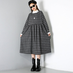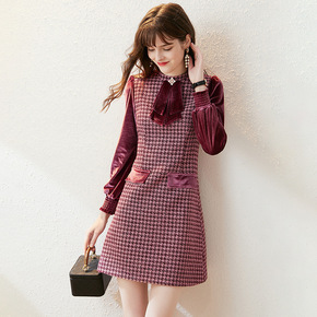 复古名媛女装秋冬2020新款假两件格子连衣裙ifa...