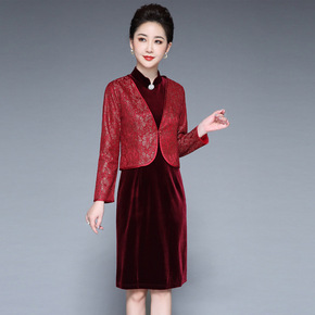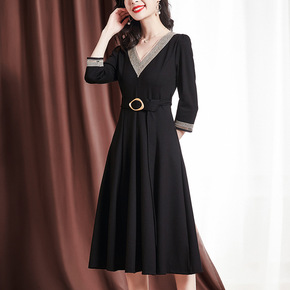 中年妈妈装2020新款秋冬装气质V领连衣裙中年女阔...
