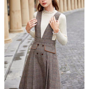 2021秋冬季新款小个子小香风气质背心裙子马甲毛呢...