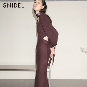 [定制]2019秋冬时尚泡泡袖露背系带罗纹针织连衣...
