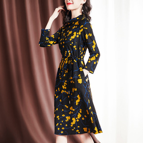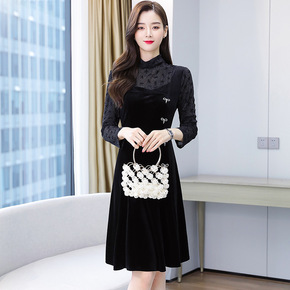 2021秋冬新款长袖仿貂绒连衣裙大码韩版收腰显瘦碎...